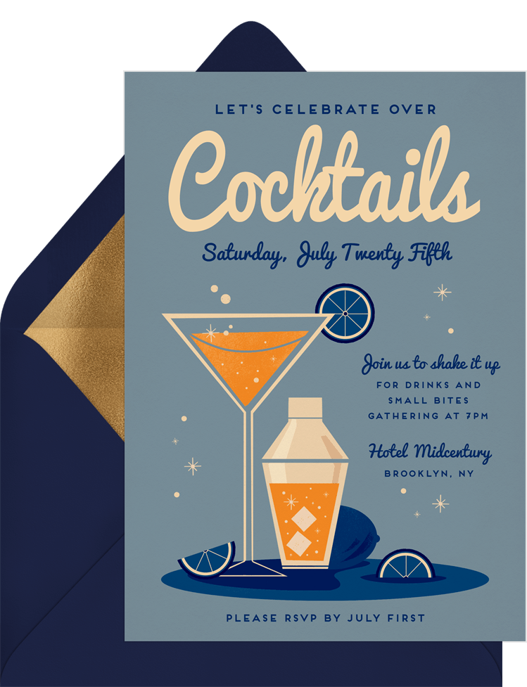 Retro Cocktail Invitations In Blue Greenvelope Com